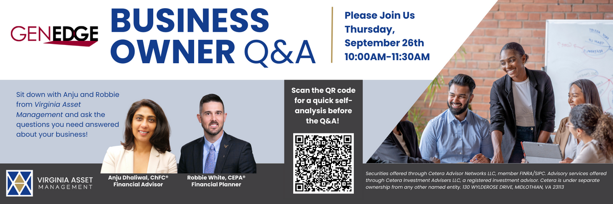 Virginia Asset Management will be hosting a complementary virtual town hall on September 26, 2024, from 10am to 11:30am, especially designed for business owners. In preparation for the online event, those interested in attending are invited to take these two short surveys: